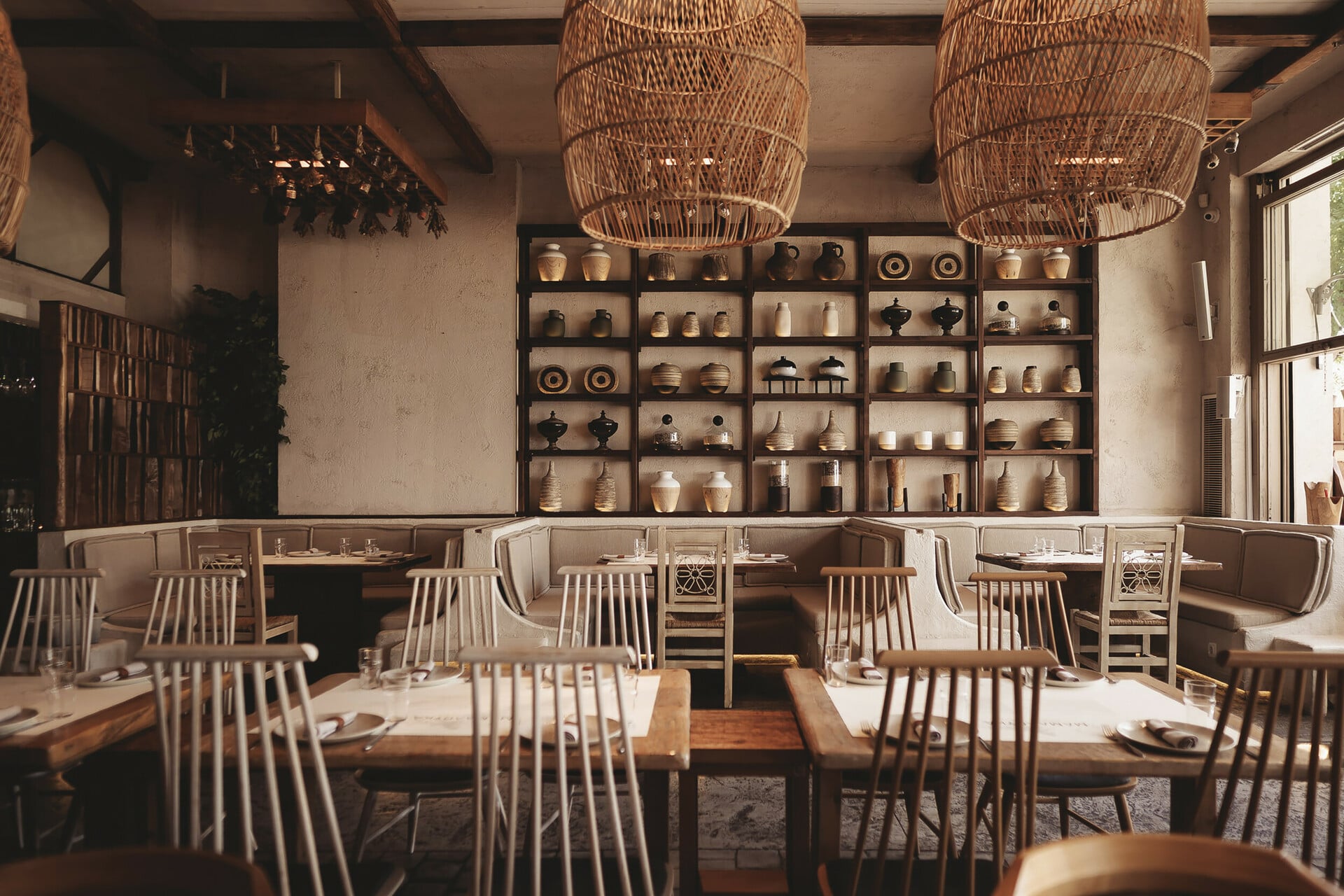Την ίδια ζεστασιά αποπνέει ο χώρος του Μαμαλούκα που εμπνέεται από την αγιορείτικη αρχιτεκτονική, με τα μοναστηριακά τραπέζια να ξεχωρίζουν και τις boho λεπτομέρειες, όπως τα χειροποίητα ψάθινα φωτιστικά.