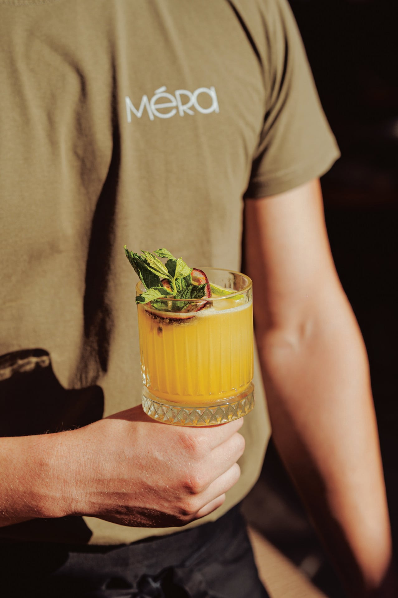Το μεσημέρι και το βράδυ η κουζίνα ετοιμάζει comfort γεύσεις, νόστιμες και καλοφτιαγμένες, σερβίροντας πιάτα μαγειρεμένα με ποιότητα και έξυπνους συνδυασμούς. Κι όταν πέσει ο ήλιος, το Méra γίνεται βραδινό στέκι. Η ατμόσφαιρα χαμηλώνει και οι παρέες απλώνονται στον χώρο για τα αγαπημένα τους κοκτέιλ, τα μουσικά ακούσματα σου φτιάχνουν τη διάθεση και ανεβάζουν το κέφι της παρέας.