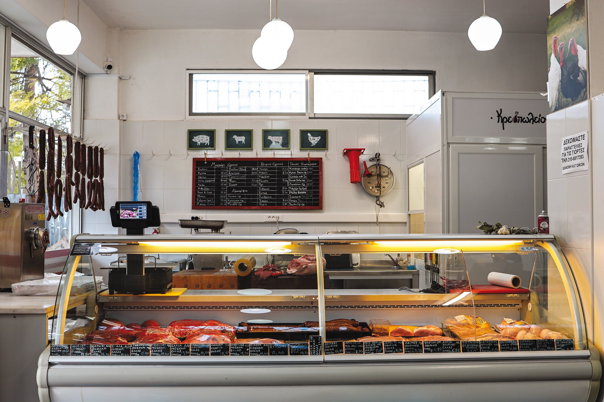 Ανάμεσα στα κρέατα ξεχωρίζουν τα αρνιά και κατσίκια της Νάξου. «Στο νησί τα ζώα ζουν ελεύθερα στη φύση και βόσκουν χορτάρια και βότανα, που έχουν ποτιστεί από τη θαλασσινή αρμύρα», όπως μας λέει η Εύη. Στο τμήμα τυριών του μαγαζιού θα βρεις την πολυβραβευμένη γραβιέρα Νάξου, απλή και 12μηνης ωρίμανσης, αρσενικό και ξινότυρο Νάξου και πολλά άλλα ΠΟΠ τυριά, όπως η φέτα Ελασσόνας.