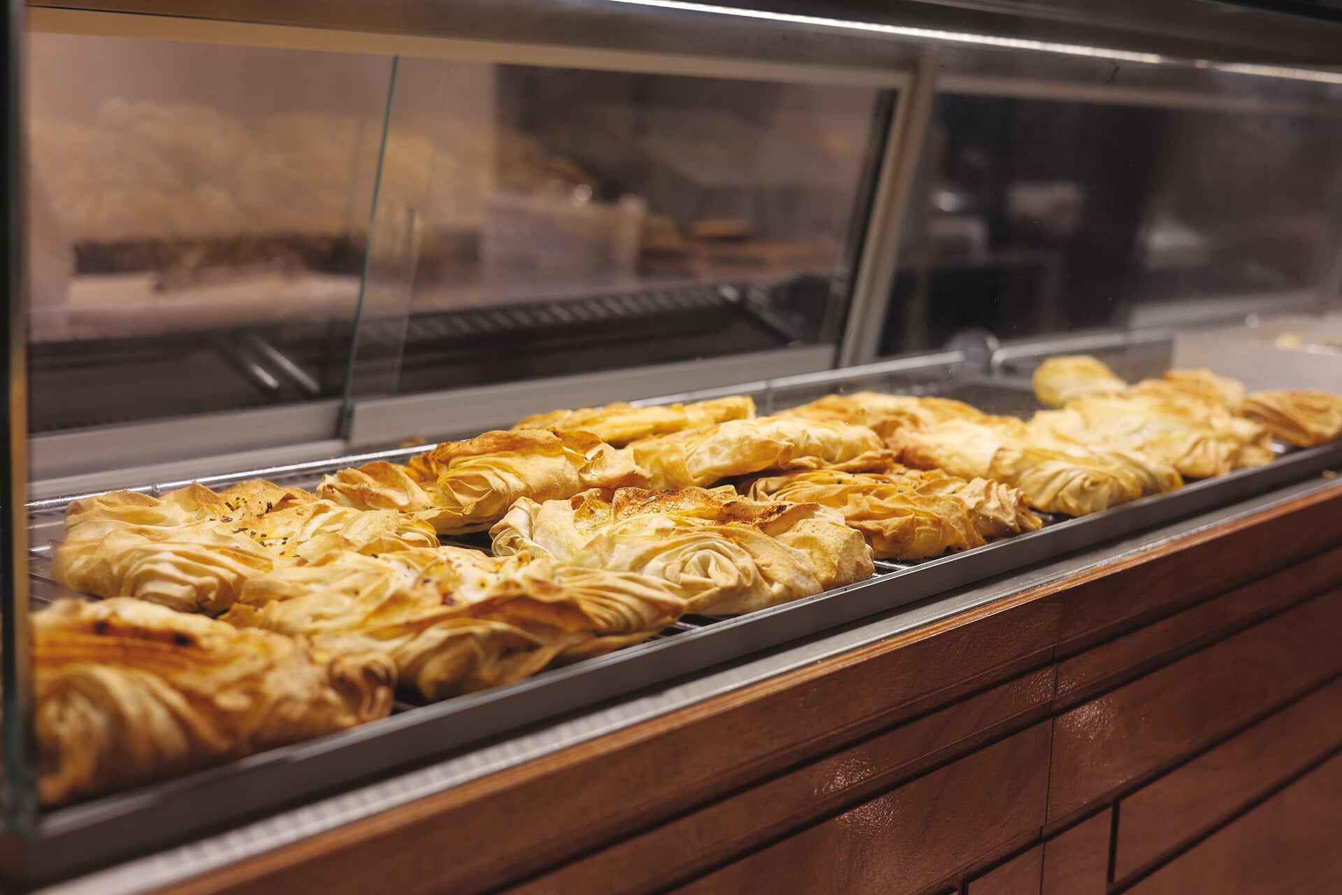 Εδώ ξετυλίγεται η τέχνη του φύλλου γιουφκά που έχει τις ρίζες του στην παράδοση της Πόλης και της Μικράς Ασίας. Πρόκειται για μια μπελαλίδικη παρασκευή από νερό και αλεύρι που ανοίγεται μέχρι να γίνει πολύ λεπτό, ζεματίζεται σε μαντεμένιο σάτσι και μετά βρέχεται και ξεκουράζεται σκεπασμένο κάτω από ειδικές κουβέρτες. Το αποτέλεσμα είναι ένα φύλλο μοναδικό, που θρυμματίζεται στο δάγκωμα και η ελαφριά γεύση του μπερδεύεται με τα διαλεκτά υλικά της κάθε γέμισης.