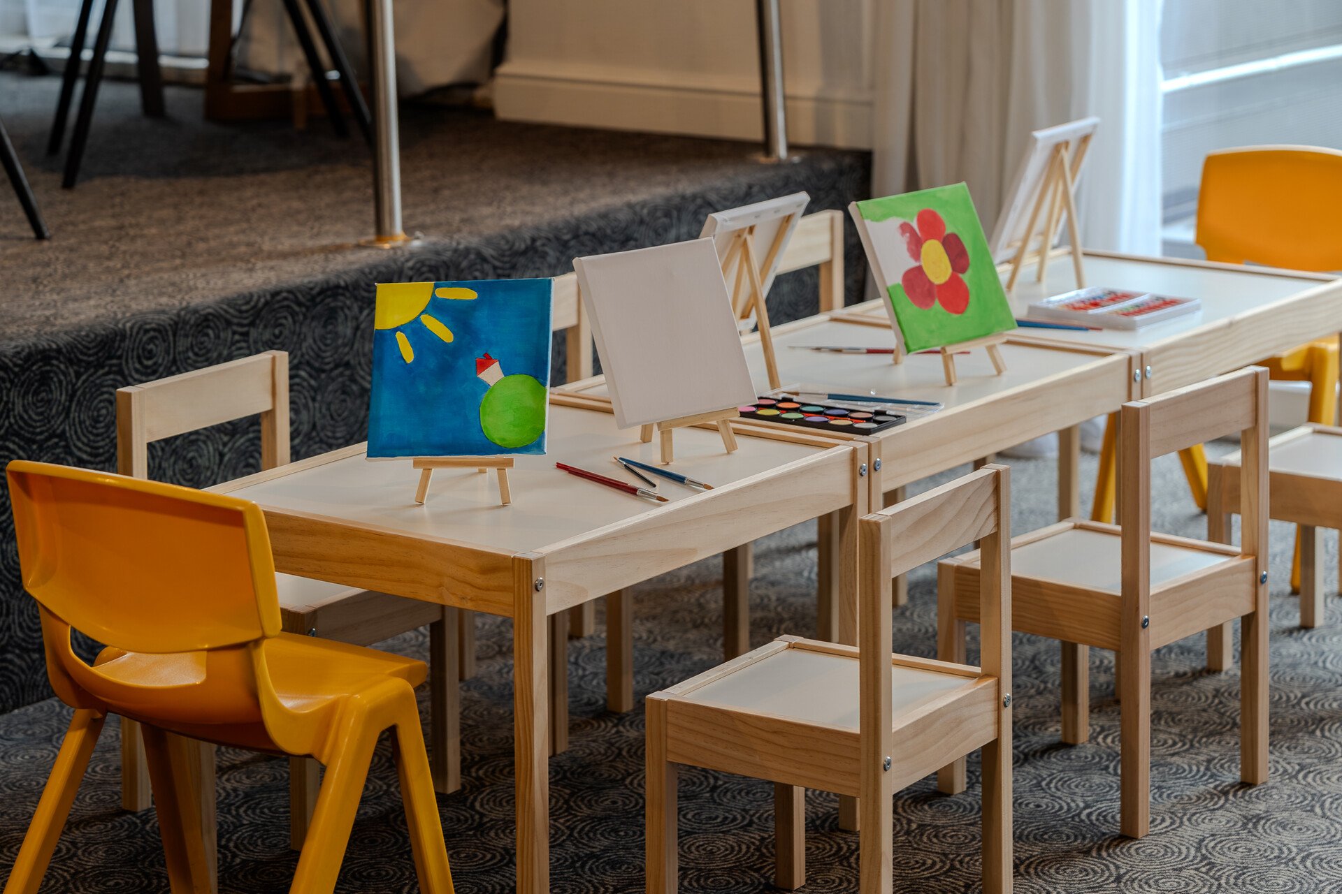 Εμπνευσμένα από τα χρώματα του φθινοπώρου, τα παιδιά δημιουργούν το δικό τους έργο τέχνης, ζωγραφίζοντας ελεύθερα σε καμβά.