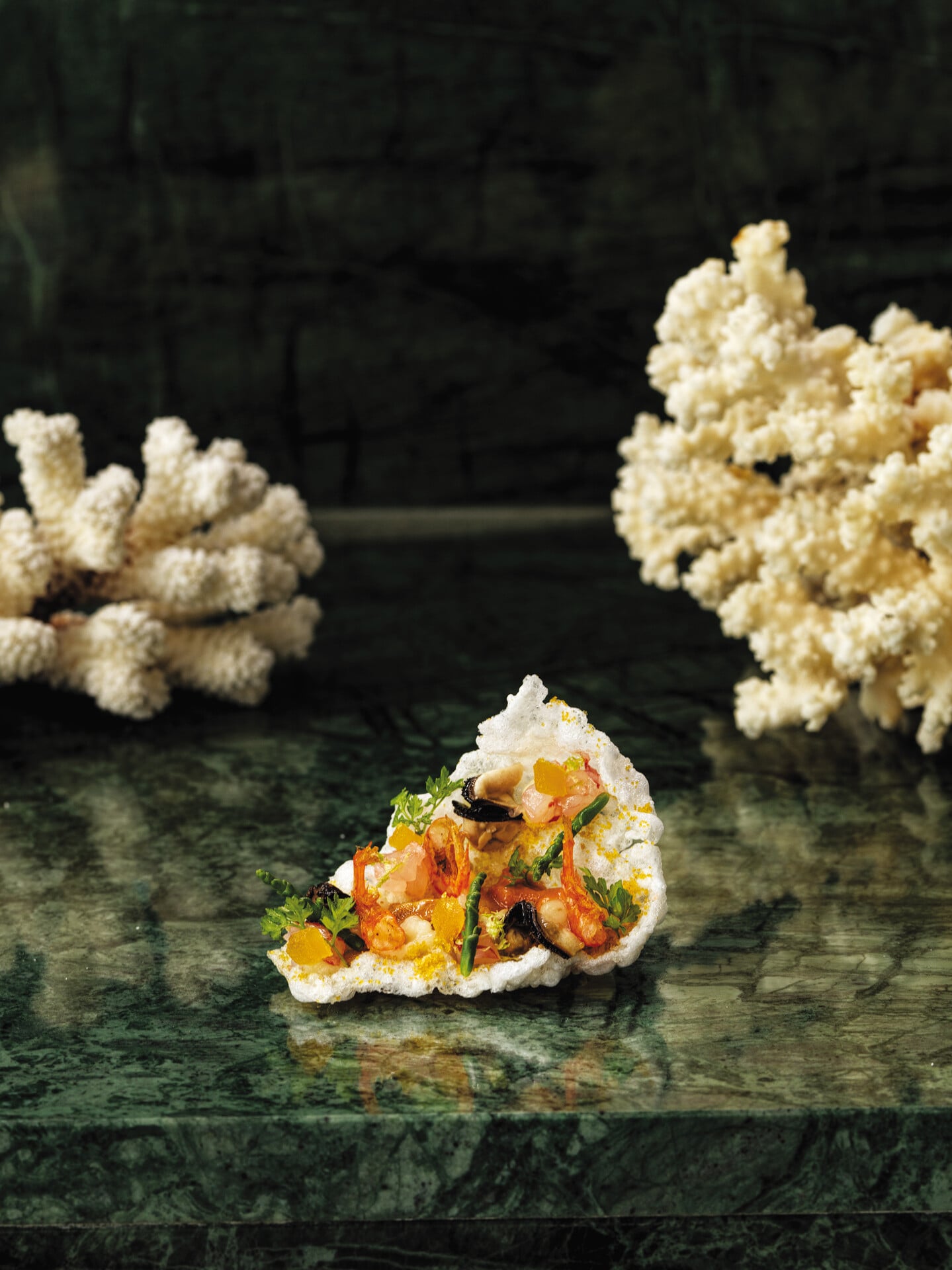 Ο σεφ Βασίλης Ρούσσος υπογράφει δύο μενού γευσιγνωσίας που λειτουργούν ως δύο διαφορετικοί τρόποι να διαβάσεις τον τόπο μας. Το «Synecdoche» είναι ένα ποιητικό ταξίδι στις ελληνικές αναφορές, ενισχυμένο με διεθνή στοιχεία, όπου αναγνωρίζεις γνώριμες γεύσεις σε εντελώς νέα μορφή. Το «Synthesis», από την άλλη, είναι μια σύγχρονη ερμηνεία της ελληνικής κουζίνας με έμφαση στα τοπικά, εποχικά υλικά, εκεί όπου η πρώτη ύλη γίνεται η βάση για όλη την εμπειρία.