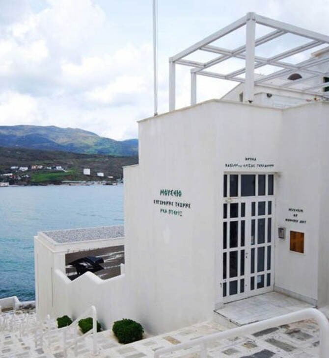 1.1.1970 ΜΟΥΣΕΙΟ ΣΥΓΧΡΟΝΗΣ ΤΕΧΝΗΣ - ΙΔΡΥΜΑ ΒΑΣΙΛΗ ΚΑΙ ΕΛΙΖΑΣ ΓΟΥΛΑΝΔΡΗ 1.1.1970 To Μουσείο Σύγχρονης Τέχνης παρουσιάζει στην Παλαιά Πτέρυγα τη μόνιμη έκθεση, η οποία περιλαμβάνει τη συλλογή των έργων του ανδριώτη γλύπτη Μιχάλη Τόμπρου, την οποία κληροδότησε στη γενέτειρά του, την Άνδρο και μέρος της συλλογής του Ιδρύματος Βασίλη και Ελίζας Γουλανδρή, που συμπεριλαμβάνει έργα μερικών από τους σημαντικότερους εκπροσώπους της σύγχρονης γλυπτικής (Σοφία Βάρη, Μπάμπης Βεκρής (Electros), Γιάννης Γαΐτης, Γιώργος Γεωργιάδης, Κώστας Δικέφαλος, Γιώργος Ζογγολόπουλος, Δημήτρης Καλαμάρας, Μαρίνα Καρέλλα, Κώστας Κουλεντιανός, Γιώργος Λάμπρου, Ναταλία Μελά, Γιώργος Νικολαΐδης, Γιάννης Παρμακέλης, Γιάννης Παππάς, Ναυσικά Πάστρα, Γεράσιμος Σκλάβος, Μαριάννα Στραπατσάκη, Τάκης, Chryssa).