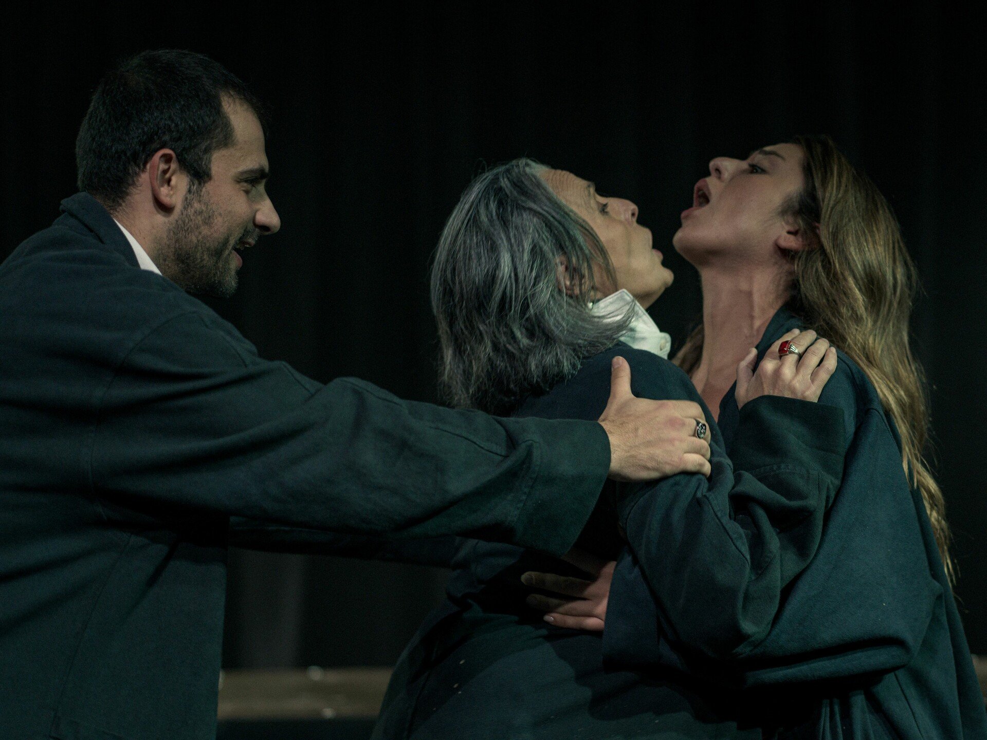 Έτσι, αυτή τη φορά έχουμε τέσσερις χαρακτήρες (μια Θεατρίνα, έναν Πολέμαρχο, μια Ανταποκρίτρια κι έναν Λιποτάκτη) που εν καιρώ πολέμου έχουν βρει καταφύγιο σ’ έναν υπόγειο μισοκατεστραμμένο χώρο (που είναι ταυτόχρονα εγκαταλελειμμένο θέατρο, παρεκκλήσι και μπούνκερ. Εκεί περνούν τις ατελείωτες ώρες της πολιορκίας, αναπαριστώντας τον Ερρίκο Ε’ του Σαίξπηρ – ή, τέλος πάντων, μια οποιαδήποτε πολεμική ιστορία (γιατί θεωρώ ότι ο Ερρίκος Ε’ αφηγείται κάθε πόλεμο, με τον ίδιο τρόπο που ο Ρωμαίος και Ιουλιέτα αφηγείται κάθε έρωτα). Κάθε τόσο η παράστασή τους διακόπτεται από οξείς, εχθρικούς ήχους: σειρήνες, έκτακτες ανακοινώσεις και διαγγέλματα, βόμβες που πέφτουν, πυροβολισμοί κ.λπ.