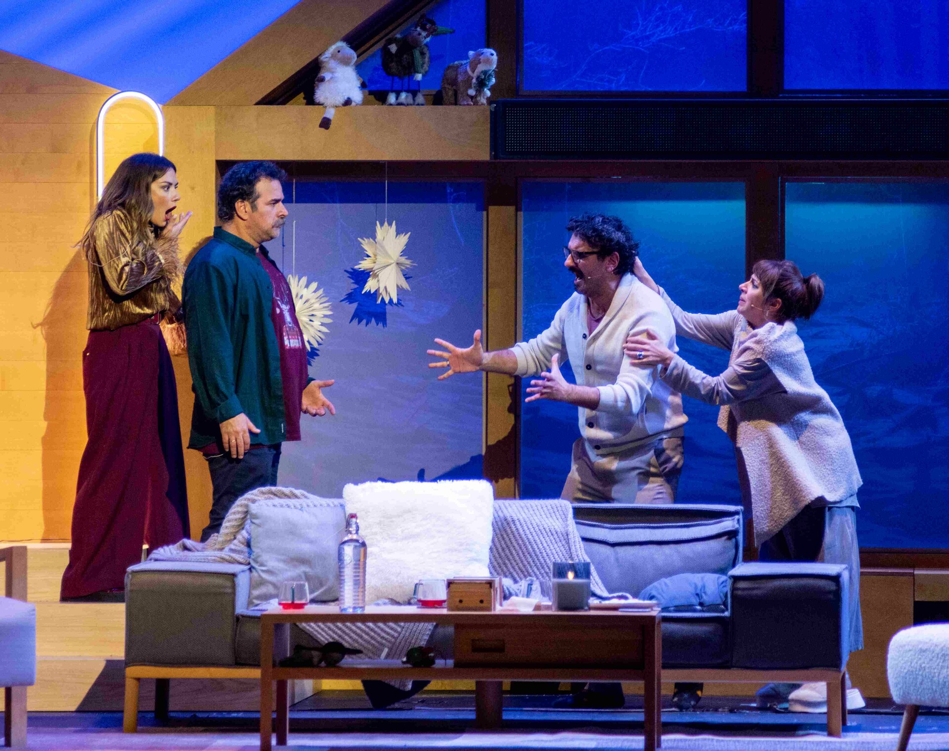 Με φόντο την χιονισμένη χριστουγεννιάτικη Λαπωνία, δύο ζευγάρια, διαφωνούν, συμφωνούν, μαλώνουν, γελούν, κλαίνε και μονοιάζουν.