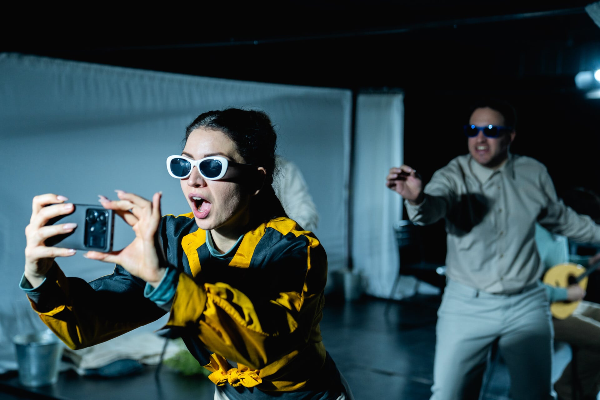 Οι ηθοποιοί: Φίλιππος Κοντογιώργης, Θανάσης Λυσανδρόπουλος, Σταύρια Νικολάου και Γρηγόρης Πανταζής, εναλλάσσονται σε όλους τους ρόλους του έργου, δίνοντας την αίσθηση ότι βιώνουν όλα τα γεγονότα της ζωής τους στις τέσσερις γωνίες μιας αυλής ενός αγροτικού σπιτιού.