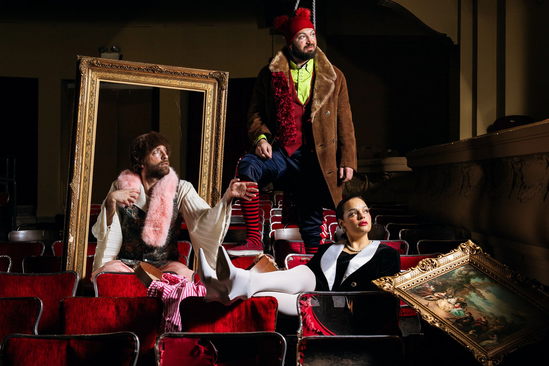 Αντλώντας από τη σκέψη του Theodor W. Adorno, η παράσταση προσεγγίζει την τέχνη ως πεδίο κοινωνικής ενοχής: το «λαμπερό θέαμα» συχνά οικοδομείται πάνω στην ανασφάλεια, την έκθεση και τη ματαιότητα εκείνων που το παράγουν.