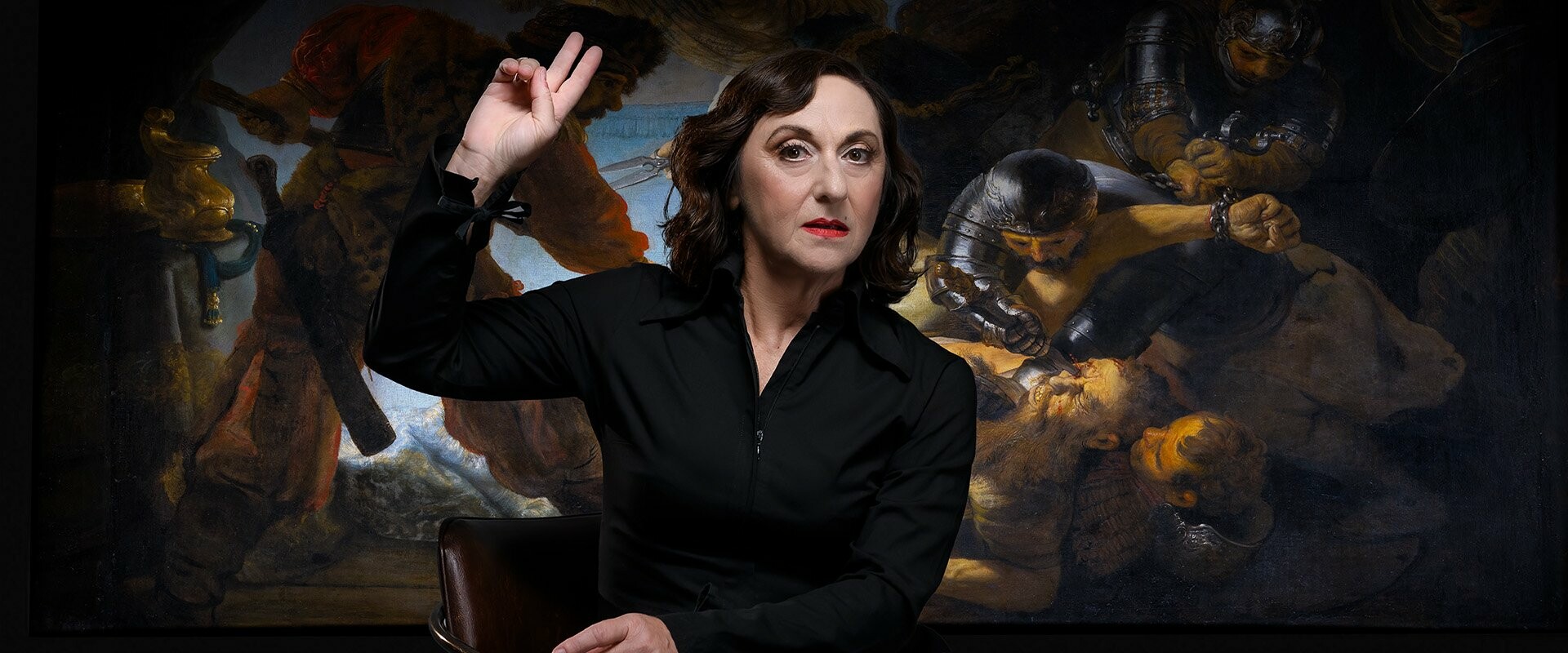 Ο Σέρχιο Μπλάνκο στέκεται μπροστά στον εμβληματικό πίνακα του Ρέμπραντ Η τύφλωση του Σαμψών από τους Φιλισταίους και ξεκινάει μια διάλεξη περί βίας. Η εισήγησή του είναι τολμηρή και κινείται μεταξύ αλήθειας και επινόησης, χωρίς να διακρίνεται με σαφήνεια η πραγματικότητα από τη φαντασία.