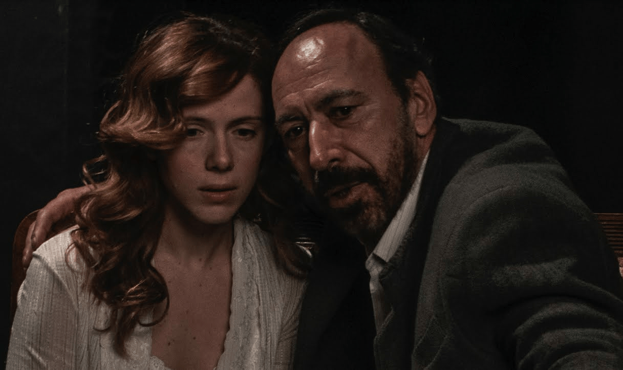 Δίπλα του, η Φιλίππα Κουτούπα ερμηνεύει τον ρόλο της Λίζας, έναν ρόλο-κλειδί στο έργο.