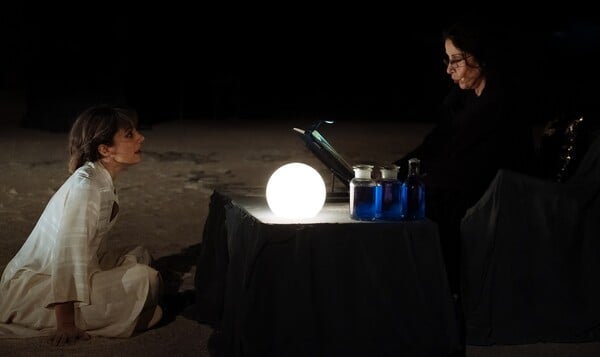 Το τραγούδι του ΜάνουΧατζιδάκι, με τους στίχους του Παντελή Πρεβελάκηαπό τον «ΜεγάλοΕρωτικό» (1972), μου ερχότανσυνέχεια στο στόμακατά τη διάρκεια των προβών. «ΚάποιακατάραείναιΘεού»… «σε χτύπησεοργή Θεάς»… «Μιας θεϊκήςεκδίκησηςάμοιροςστόχος»…«Σαν μέλι με φαρμάκι…», «Μα τα δεσμά της αγάπηςπρέπει να είναιχαλαρά».