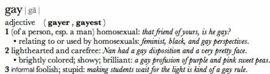 Πρώτον, οι γονείς της είναι δύο λεσβίες που την υπεραγαπούν και δεύτερον, ένας από τους ορισμούς της λέξης gay που έδινε το λεξικό, έλεγε πως ούτε λίγο ούτε πολύ gay, σημαίνει και άτυπα, χαζός.