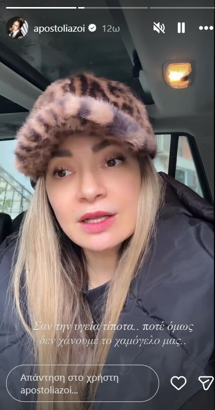 Επίσης, σε δεύτερη Insta-ανάρτησή της, δημοσιεύοντας βίντεο, σχολίασε: «Σαν την υγεία τίποτα, ποτέ δεν χάνουμε το χαμόγελό μας».