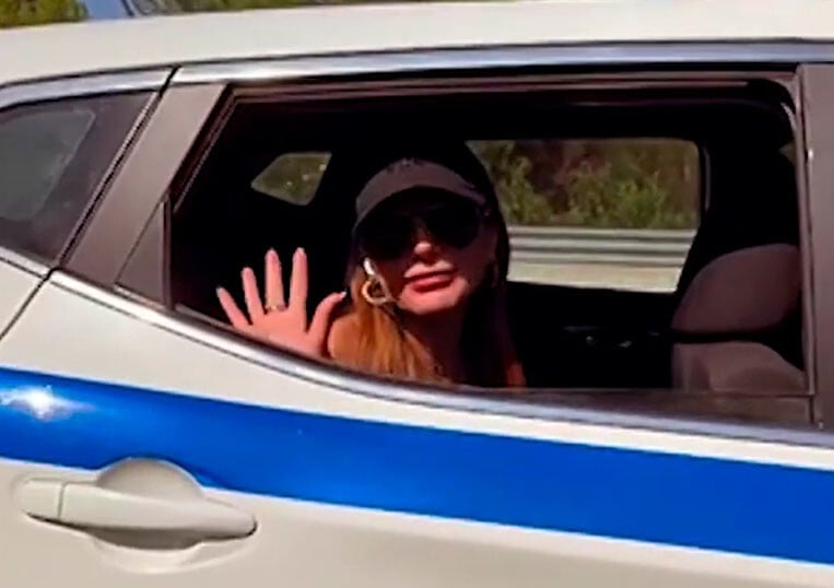 Βίντεο που δημοσίευσε τηλεοπτική εκπομπή, δείχνει περιπολικό να μεταφέρει την τραγουδίστρια, Δέσποινα Βανδή, μετά από πρόβλημα στο αυτοκίνητό της.