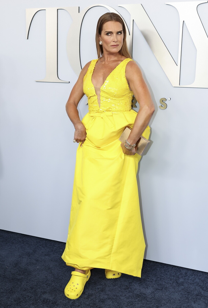 Η Μπρουκ Σιλντς εμφανίστηκε στο κόκκινο χαλί των Tony Awards, φορώντας την τουαλέτα της και ένα ζευγάρι κίτρινα crocs.