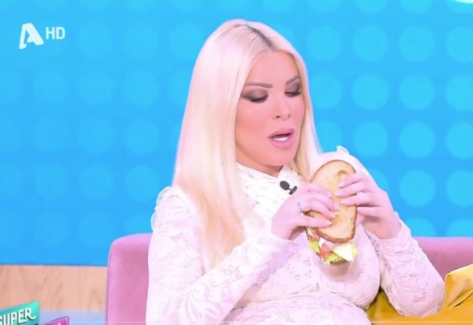 Προς το τέλος της εκπομπής «Super Κατερίνα», την Παρασκευή, ο σκηνοθέτης γύρισε την κάμερα πάνω στην Κατερίνα Καινούργιου, την στιγμή που έτρωγε ένα σάντουιτς στο πλατό.