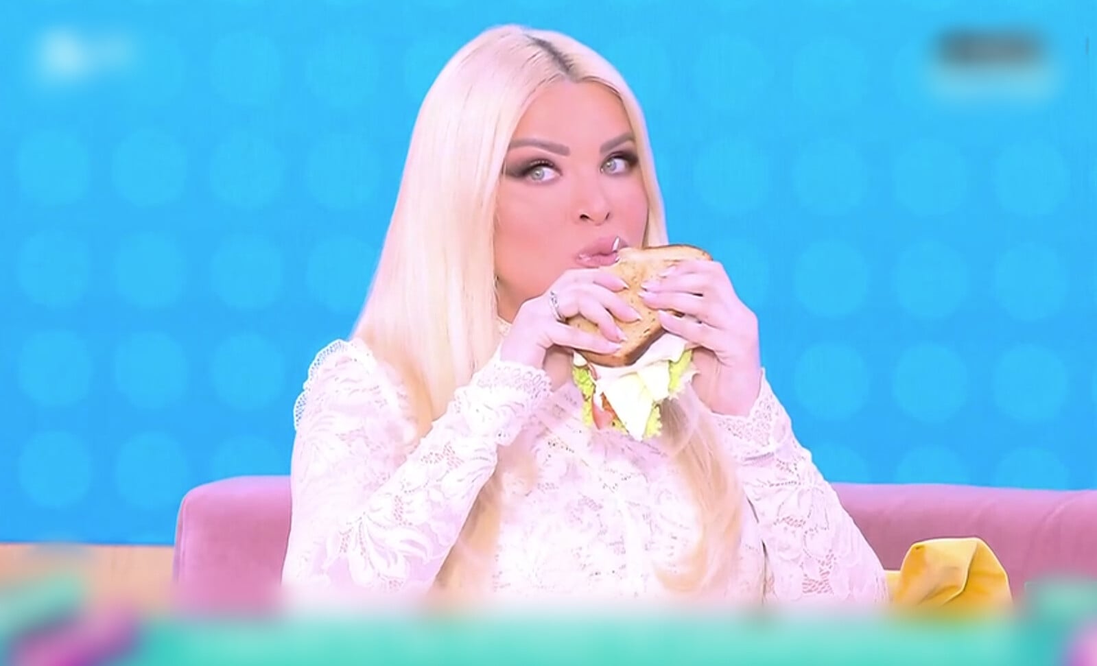 Συγκεκριμένα, όταν είδε τα κοντινά πλάνα την ώρα που έτρωγε on air, αντέδρασε, ρωτώντας τον σκηνοθέτη της εκπομπής «γιατί με δείχνεις;», φανερά αμήχανη.
