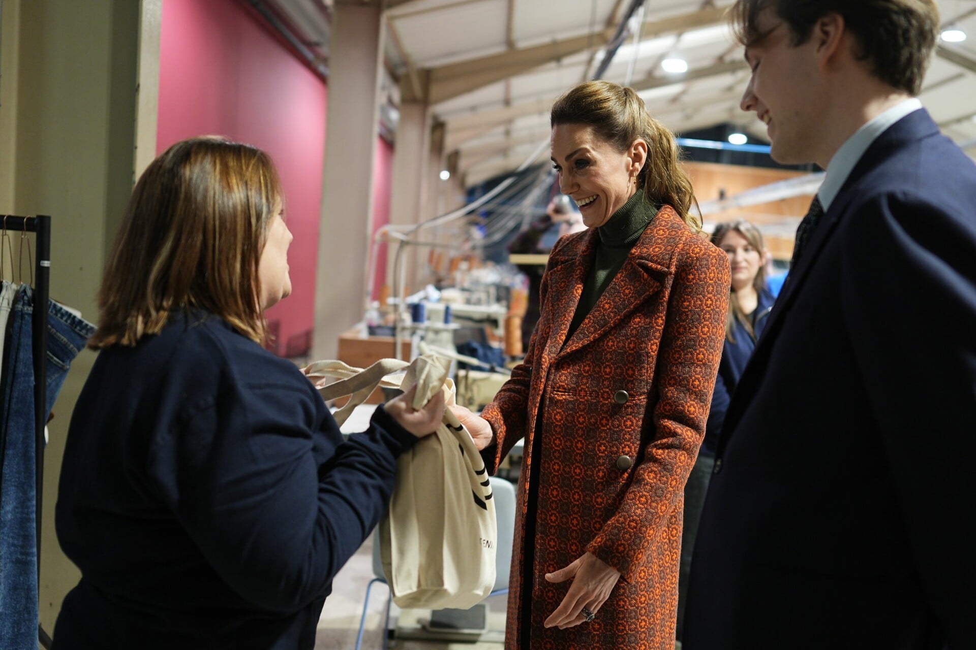 Η πριγκίπισσα της Ουαλίας επισκέφθηκε και το εργοστάσιο Hiut Denim στο Cardigan της Ουαλίας, όπου συμμετείχε στη γραμμή παραγωγής μαζί με εκπαιδευόμενους. Κάθε τζιν Hiut έχει ραμμένο στο εσωτερικό του ένα σήμα «Made in Wales» και η πριγκίπισσα ανέλαβε να τελειοποιήσει τις τελευταίες ραφές για την ετικέτα στο εσωτερικό ενός τζιν για τον σύζυγό της, τον πρίγκιπα Ουίλιαμ.