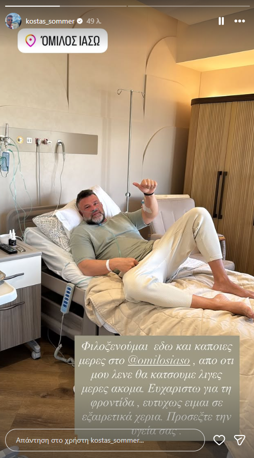 Μέσω μίας ανάρτησης στον προσωπικό του λογαριασμό στο Instagram το μεσημέρι της Δευτέρας, ο Κώστας Σόμμερ ενημέρωσε το διαδικτυακό του κοινό πως τις τελευταίες ημέρες βρίσκεται στο νοσοκομείο.