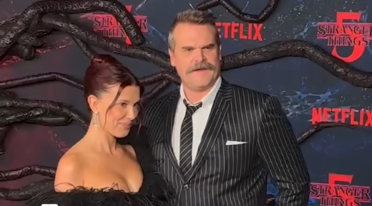 Το Netflix δημοσίευσε βίντεο από την κοινή τους εμφάνιση, γράφοντας στη λεζάντα: «Ο Ντέιβιντ Χάρμπορ και η Μίλι Μπόμπι Μπράουν φτάνουν μαζί για την τελευταία πρεμιέρα του Stranger Things».