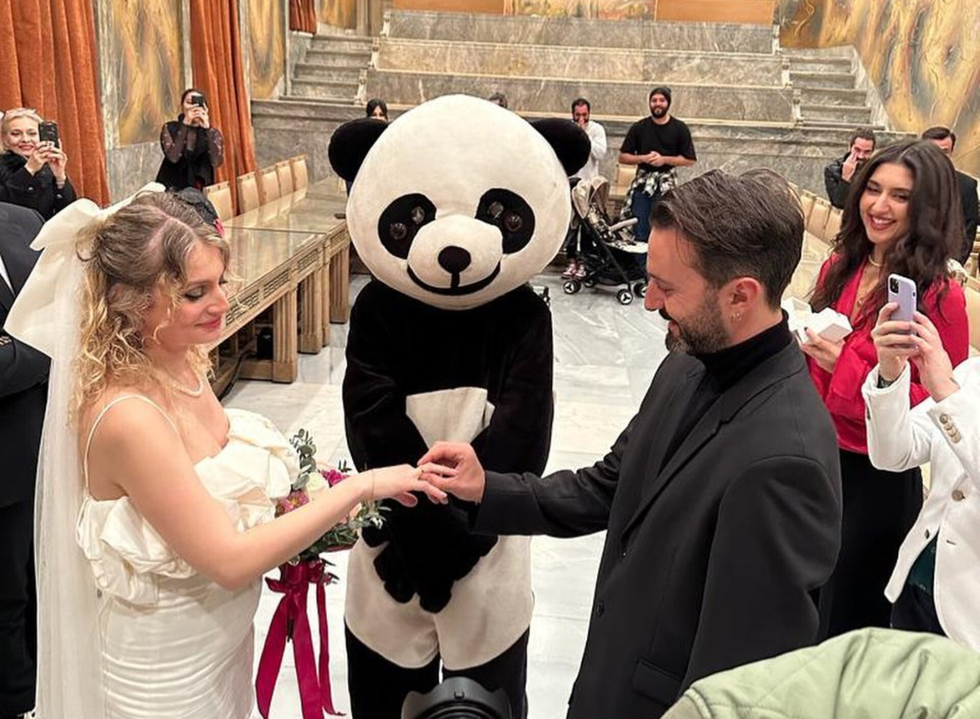 Σε πρόσφατο πολιτικό γάμο που τελέστηκε στον δήμο Αθηναίων, την «παράσταση» έκλεψε ο κουμπάρος που τράβηξε τα φλας.