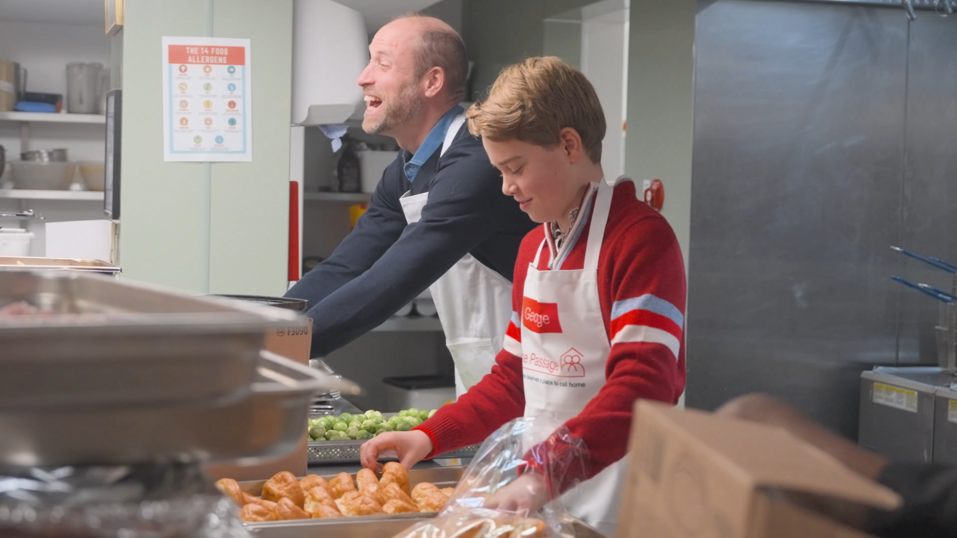 Σε βίντεο που δημοσιεύθηκε στο YouTube, ο Ουίλιαμ και ο Τζορτζ καταγράφηκαν να φορούν ποδιές και να ετοιμάζουν το φαγητό στην κουζίνα. Έπειτα, έστρωσαν τα τραπέζια, τοποθετώντας πετσέτες και χριστουγεννιάτικα στολίδια.