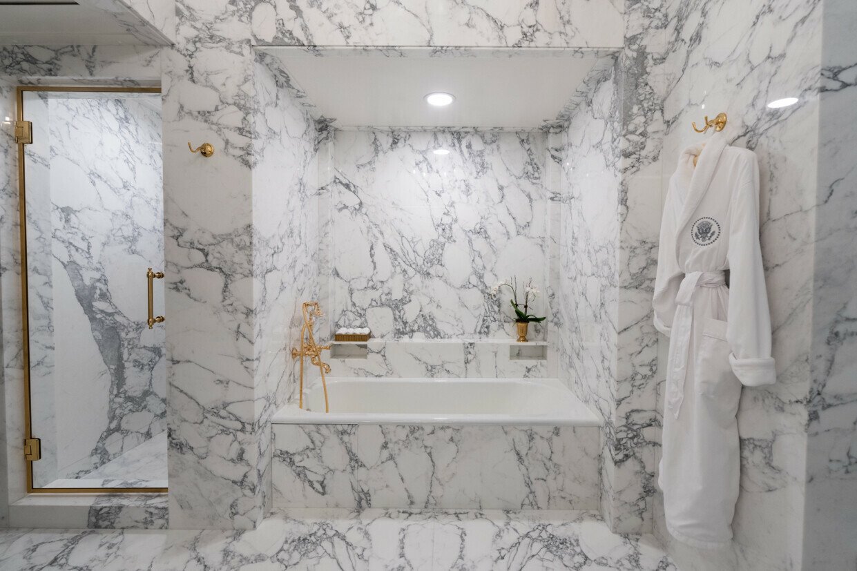 Ο Ντόναλντ Τραμπ μοιράστηκε φωτογραφίες του ανακαινισμένου μπάνιου του στον Λευκό Οίκο μέσω του Truth Social.