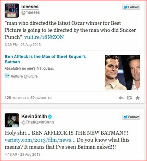 Σίγουρα ακούσατε ότι η Warner Bros. ανακοίνωσε ότι ο Ben Affleck θα πρωταγωνιστήσει στην καινούρια ταινία Batman/Superman. Ο κόσμος του ίντερνετ — όπως είναι φυσικό — σάστισε. Δείτε παρακάτω περισσότερα από 50 σχετικά tweet.