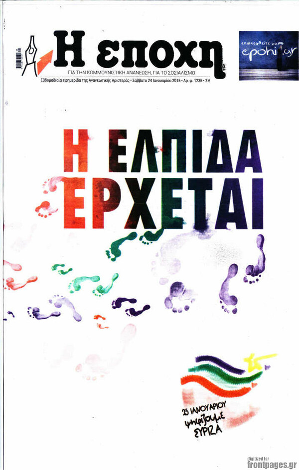 «Άρη δεν είναι αστείο. Σε 30 χρόνια θα είναι αλλά όχι τώρα» σχολίασε φίλη όταν της έδειξα ένα περσινό πρωτοσέλιδο της Kontra News, στο οποίο έγραφε: «Κουράγιο! Σε λίγες μέρες γίνεται Πρωθυπουργός ο Αλέξης και τελειώνουν τα βάσανά μας!»