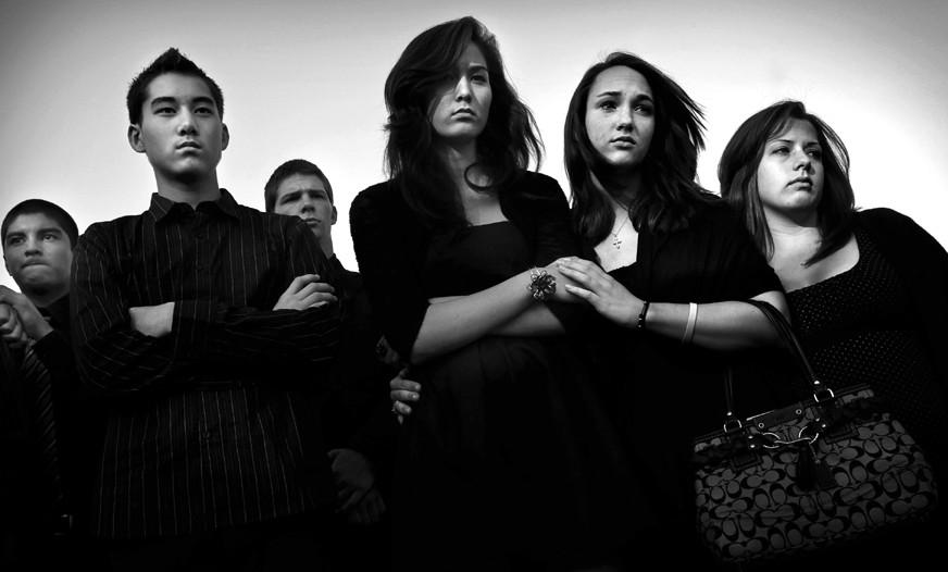 Tori Rowles, center, flanked by her brother Forrest Rowles and friend Kat Mokry, attends burial services. Tori and Melody, who planned to go to college together, were inseparable. They planned to be fashion designers. Tori was next to Melody when she was shot when they left a homecoming football game. 'She was taken away by two gang people, and they had no idea how many people they hurt.' Tori said.