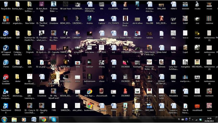 Ποτέ δεν αγάπησα την επιφάνεια εργασίας, πάντα την έκρυβα. ΌΜΩΣ ποτέ δεν την γέμιζα,, πάντα την σεβόμουν. Ήταν σαν την θείτσα στο λεωφορείο που σου την δίνει η μούρη της αλλά δεν της παίρνεις και την θέση, την αγνοείς απλώς. Ε κάπως έτσι ΗΤΑΝ. Τώρα όχι απλά της πήρα την θέση, έκατσα πάνω της και δεν την βλέπω κιόλας.