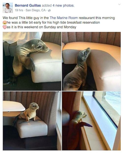 Ο σεφ εξήγησε ότι το χαριτωμένο βρέφος σύρθηκε στην πλατφόρμα πρόσβασης από την ακρογιαλιά και τρύπωσε μέσα στο εστιατόριο από την πίσω πόρτα.