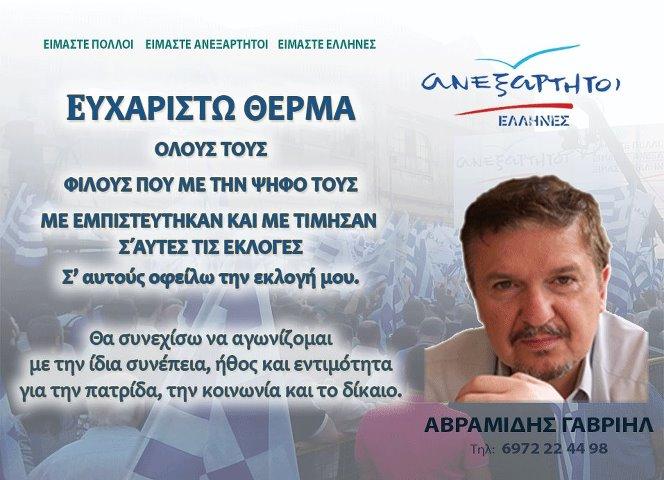 Το τίτλο του μεγαλύτερου «κωλοτούμπα» της ελληνικής πολιτικής σκηνής διεκδικεί επάξια ο εκλεγμένος, από τις κάλπες της 6ης Μαΐου, βουλευτής των Ανεξάρτητων Ελλήνων, στην Α΄ Θεσσαλονίκης, Γαβριήλ Αβραμίδης.