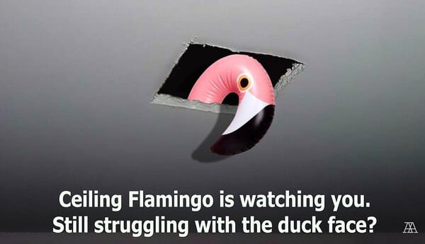 «Μία σύντομη ιστορία γνωστών εικόνων προερχόμενων από τον χώρο της ζωγραφικής, της γραφιστικής, του κινηματογράφου και του ίντερνετ ιδωμένων από την σκοπιά των φουσκωτών φλαμίνγκο.