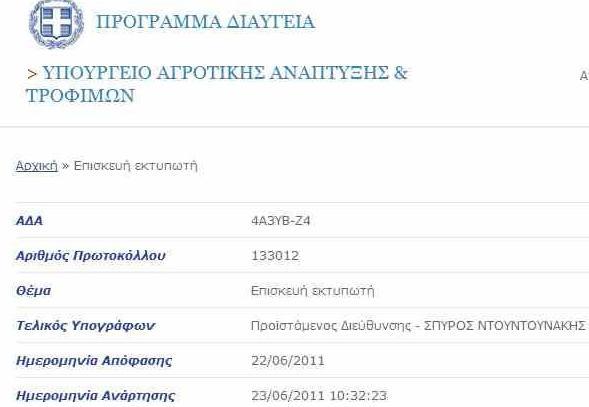 Υπουργείου Αγροτικής Ανάπτυξης & Τροφίμων ξόδεψε 341,94 ευρώ για να