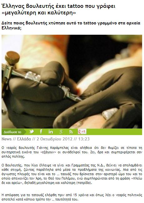 Το πατριωτικό, αρχαιοελληνικό, ψιλοπολεμοχαρές τατουάζ του ίσως να δίνει μια άλφα εξήγηση και για την ψήφο του...