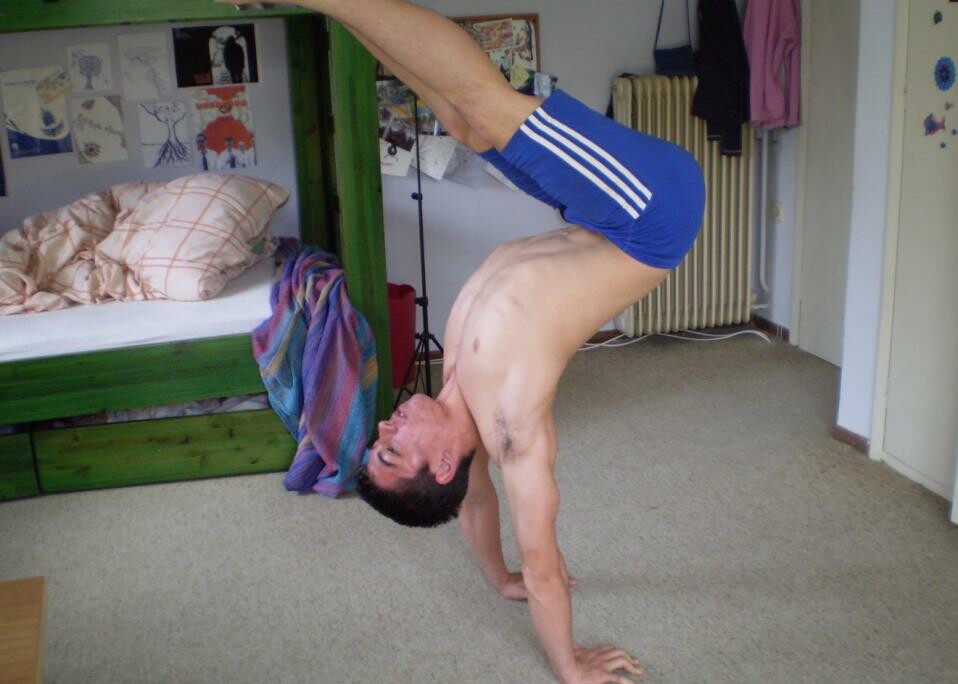 Ο Κρίτωνας Αναστασόπουλος προπονείται. Φωτογραφία τραβηγμένη απ' τον πατέρα του Χρήστο που προπονούσε τον έφηβο στο παιδικό του δωμάτιο, όταν ήταν να δώσει εξετάσεις σε σχολή ακροβατικής στις Βρυξέλλες.