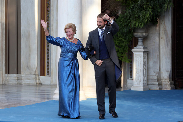 Ορισμένοι από τους λαμπερούς καλεσμένους που πέρασαν την είσοδο του ναού: Ο αδερφός του γαμπρού Νικόλαος με τη σύζυγό του, Τατιάνα Μπλάτνικ, η Αλεξία με τον σύζυγό της Κάρλος Μοράλες Κιντάνα, η μικρότερη κόρη της οικογένειας, Θεοδώρα, η Μαρί Σαντάλ με τον σύζυγό της Πάυλο και τα παιδιά τους, η μικρότερη αδερφή της Άννας Μαρίας και πριγκίπισσας της Δανίας Βενεδίκτη.
