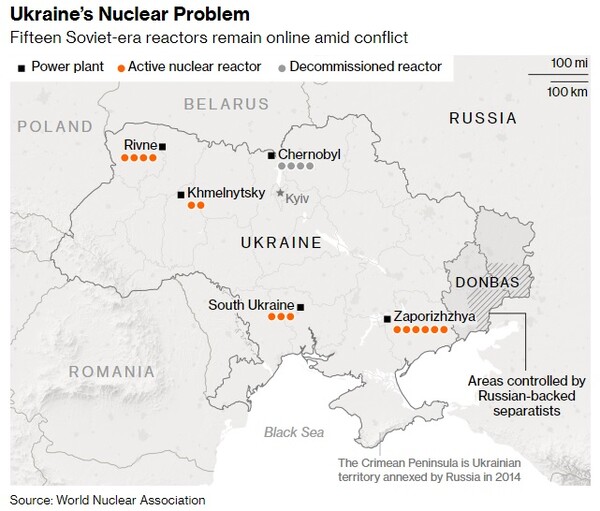 Ωστόσο, εν μέσω των δραματικών εξελίξεων στην Ουκρανία, το βλέμμα στρέφεται σε 15 σε λειτουργία πυρηνικούς αντιδραστήρες, οι οποίοι βρίσκονται σε τέσσερα διαφορετικά πυρηνικά εργοστάσια ανά την ουκρανική επικράτεια.