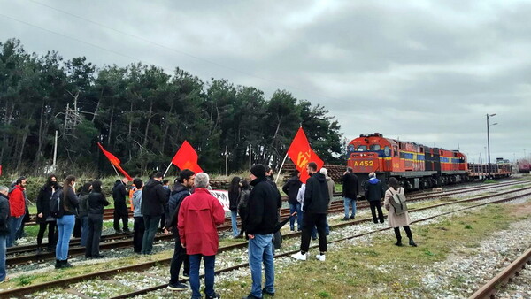 Μέλη του ΚΚΕ και της ΚΝΕ έστησαν συμβολικά, το μεσημέρι της Τρίτης, μπλόκο σε αμαξοστοιχία, που μετέφερε αμερικανοΝΑΤΟϊκό στρατιωτικό υλικό και οχήματα μάχης, στην έξοδο του λιμανιού της Αλεξανδρούπολης.