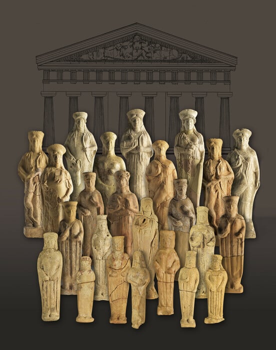 Στις αρχές του 20ού αιώνα η τυχαία ανεύρεση στην περιοχή της Μονής των Αγίων Θεοδώρων κάποιων γλυπτών σπαραγμάτων οδήγησε στην ανακάλυψη του αρχαϊκού ναού της Αρτέμιδας. Η ανασκαφή άρχισε τον Ιανουάριο του 1911 από τον έφορο Αρχαιοτήτων Φρειδερίκο Βερσάκη, ο οποίος σε σύντομο χρονικό διάστημα αποκάλυψε όλα τα γλυπτά μέρη από το δυτικό αέτωμα του ναού, όπου δέσποζε η δαιμονική μορφή της Γοργώς.