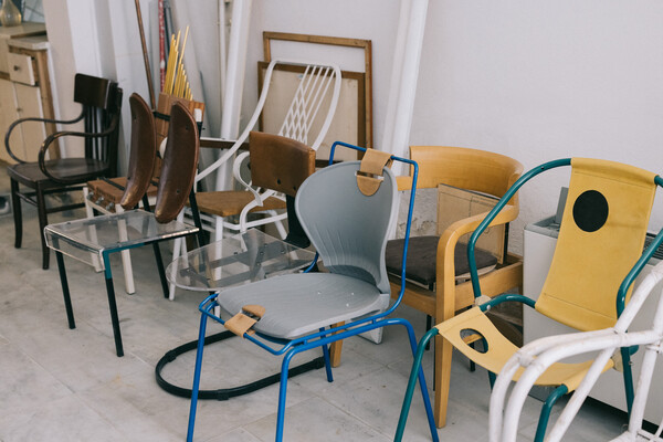 Τον γνώρισα στο εστιατόριο «Τέρας» που έχει ανοίξει τα τελευταία χρόνια με μια παρέα φίλων του στον Νέο Κόσμο. Το μαγαζί είναι ξεκάθαρα ποτισμένο με την αισθητική του και λειτουργεί απ’ το πρωί και ως εκθεσιακός χώρος αλλά και ως πωλητήριο. «Βλέπεις καρέκλα, σου αρέσει, την αγοράζεις», αυτή ήταν, τουλάχιστον αρχικά, η λογική.