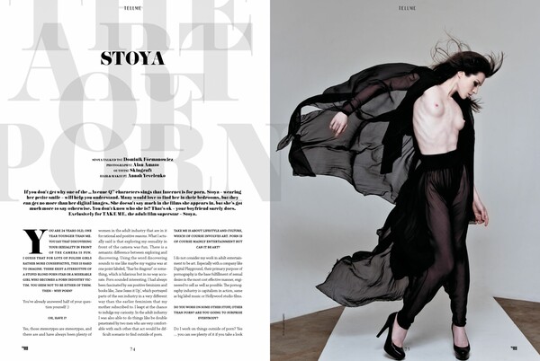 "H Stoya λέει πως δεν μπορούσε να κοιμηθεί. Φτάνοντας στη Σερβία στις 18 Νοεμβρίου για να δουλέψει σε μια ταινία, ξυπνούσε με εφιάλτες. Μόνο ένας παπαράτσο περίμενε στο αεροδρόμιο την διεθνώς αναγνωρισμένη πορνο-περφόρμερ και συγγραφέα, αλλά κι αυτός ακόμη αποχώρησε όταν η βοηθός παραγωγής που είχε σταλεί εκεί απάντησε αρνητικά στην ερώτησή του αν ήταν όντως η Stoya. Η Stoya δεν μπορούσε να κοιμηθεί στην ειδικά διαμορφωμένη σοφίτα με το έντονο λευκό ξύλινο πάτωμα όπου επέστρεφε μετά από ένα δωδεκάωρο στο στούντιο, γυρίζοντας μία αφηγηματική μη-πορνό ταινία που θα την κρατούσε απασχολημένη και αποσυνδεδεμένη. "Δεν υπάρχει χώρος για τίποτα άλλο", είπε. Περνούσε το χρόνο της ξύπνια προβάροντας το ρόλο της στην ταινία : μια γυναίκα που θα μπορούσε να βιαστεί από κάποιον που γνώριζε.
