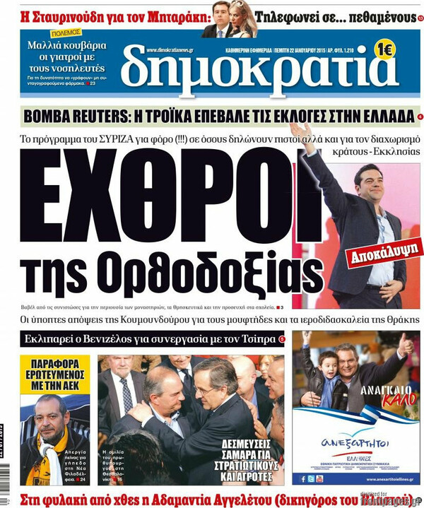 Η «ΔΗΜΟΚΡΑΤΙΑ» ΠΡΟΣΠΑΘΟΥΣΕ ΝΑ ΤΡΟΜΑΞΕΙ ΤΟΥΣ ΟΡΘΟΔΟΞΟΥΣ