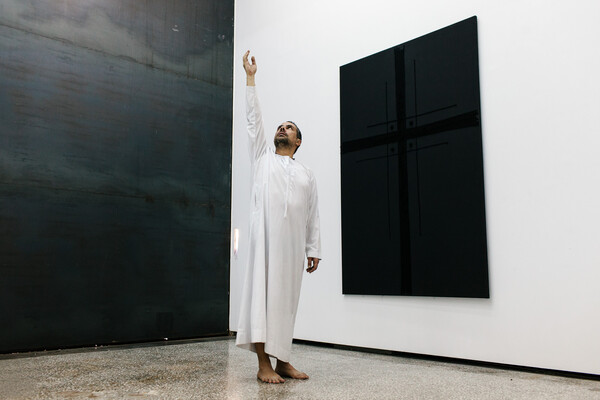 «Το έργο του Blind Adam στέκεται στο όριο μεταξύ ορατού και μη ορατού, στη λεπτή γραμμή που χωρίζει το φως από το σκοτάδι, χωρίς διαβαθμίσεις ή σκιές» λέει ο Αλέξιος Παπαζαχαρίας που έχει επιμεληθεί την έκθεση. «Εκεί, εικόνα και αντικείμενο, βάρος και όγκος, σχήμα και αίσθηση αρχίζουν να διαπραγματεύονται τα μεταξύ τους όρια σε μια σπουδή της υπόθεσης για το άγνωστο γιατί, όπως εκφράστηκε μέσα από τη δημιουργία και την ανάπτυξη, την αποδοχή και τον ασπασμό, τον συμβολισμό και την εικονογράφηση της ιδέας του θείου. Τα φτερά του αγγέλου προστάτη, ο σταυρός του μαρτυρίου (στον οποίο έχει αποδοθεί η θεία χάρη), ο τόπος λατρείας με το άγνωστης προέλευσης σχήμα της Κάαμπα στη Μέκκα, ο ψηλός θρόνος ενός θεού που βλέπει τα πάντα, αποτελούν το ένα τμήμα της σπουδής. Το άλλο τμήμα αποτελείται από έργα που απευθύνονται άμεσα στην ανθρώπινη ύπαρξη, την ανησυχία και το άγχος της, τον φόβο για το άγνωστο, τον φόβο της επιστροφής στην άβυσσο της "Ασκητικής" του Καζαντζάκη: το ιερό χαλί προσευχής, οι στροβιλισμοί και η έκσταση του Holy Glory και, φυσικά, ο θάνατος με το ακαθόριστο σχήμα που μοιάζει να θέλει να ρουφήξει ό,τι είναι γύρω του σε ένα βαθύ, ψηλαφητό σκοτάδι. Οι κόμποι και οι θηλιές, που είναι το βασικό υλικό αυτής της σειράς έργων, αποτελούν το μέτρο της κλίμακας και του χρόνου, του καιρού της κατασκευής και του μεγέθους του έργου, και το μέσο μέσα από το οποίο θα εκφράζονται ταυτόχρονα το συμπαγές και το ρευστό, το απόλυτα υλικό και το οριακά σχεδιαστικό της γλυπτικής πρακτικής του Blind Adam».
