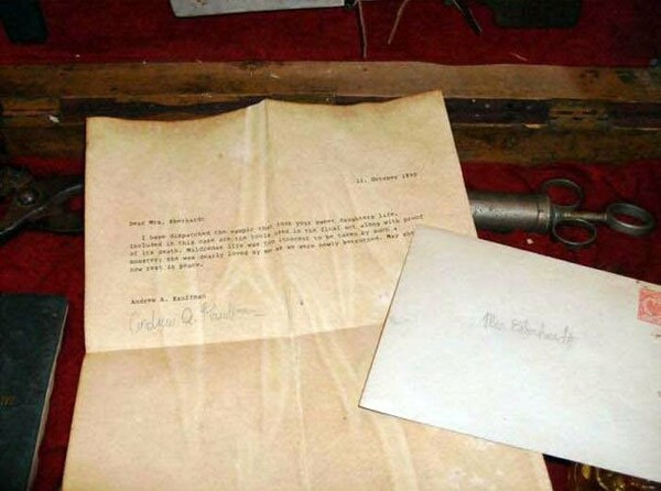 Υπάρχουν φυσικά τεράστιες αμφιβολίες ως προς τη γνησιότητα της εργαλειοθήκης, εφόσον τόσο το τσεκούρι όσο και το μαχαίρι είναι κομμάτια σύγχρονα, και η δακτυλογραφημένη επιστολή φέρει ημερομηνία 1849, όταν δεν είχε όμως ακόμα εφευρεθεί η γραφομηχανή.