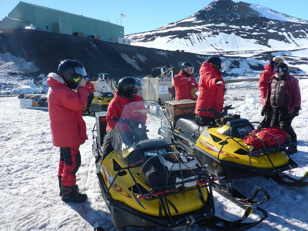 Έλκηθρα χρησιμοποιήσαμε κάποια στιγμή αλλά αυτοκινούμενα! Περισσότερο μετακινούμασταν με σκούτερ χιονιού που είναι και παντός εδάφους. Ήμασταν, ωστόσο, λίγα μόλις χιλιόμετρα από το σημείο που είχαν κατασκηνώσει οι πρωτοπόρες εξερευνητικές αποστολές των Σκοτ και Αμούνδσεν.