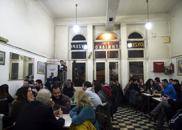 Από το τελευταίο βράδυ στο καφενείο «Τηνιακό». Φωτο: Λουίζα Βραδή