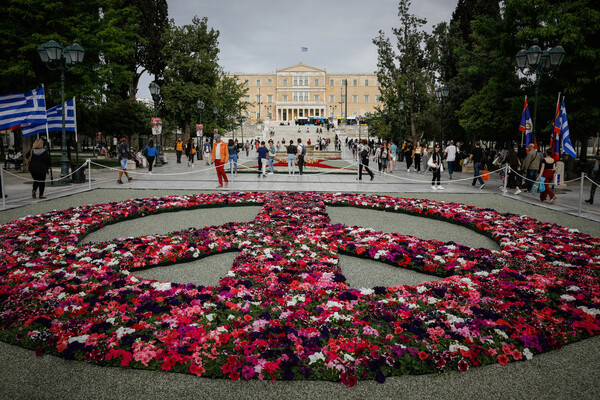 Η πλατεία Συντάγματος, με πρωτοβουλία του Δήμου Αθηναίων, είναι στολισμένη με εντυπωσιακά λουλούδια, που συνθέτουν το διεθνές σύμβολο της ειρήνης, ως ένδειξη συμπαράστασης στον δοκιμαζόμενο λαό της Ουκρανίας.