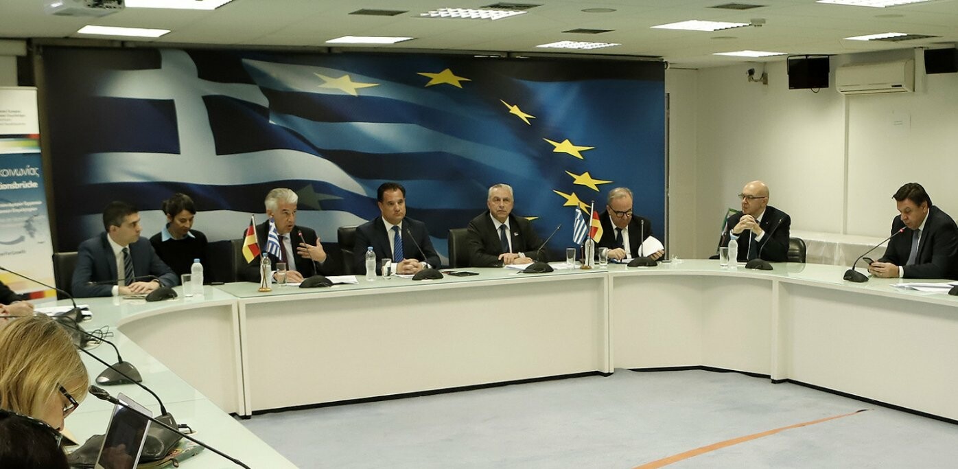 Τη συνέντευξη παραχώρησαν ο Υπουργός Ανάπτυξης και Επενδύσεων, κ. Άδωνις Γεωργιάδης, οι Υφυπουργοί Ανάπτυξης & Επενδύσεων κ. Νίκος Παπαθανάσης και κ. Χρίστος Δήμας, Εξωτερικών, κ. Κώστας Φραγκογιάννης, Περιβάλλοντος & Ενέργειας, κ. Γεράσιμος Θωμάς, ο Πρέσβης της Ομοσπονδιακής Δημοκρατίας της Γερμανίας, Δρ. Ερνστ Ράιχελ και ο Πρόεδρος του Ελληνογερμανικού Εμπορικού και Βιομηχανικού Επιμελητηρίου, κ. Κωνσταντίνος Μαραγκός.
