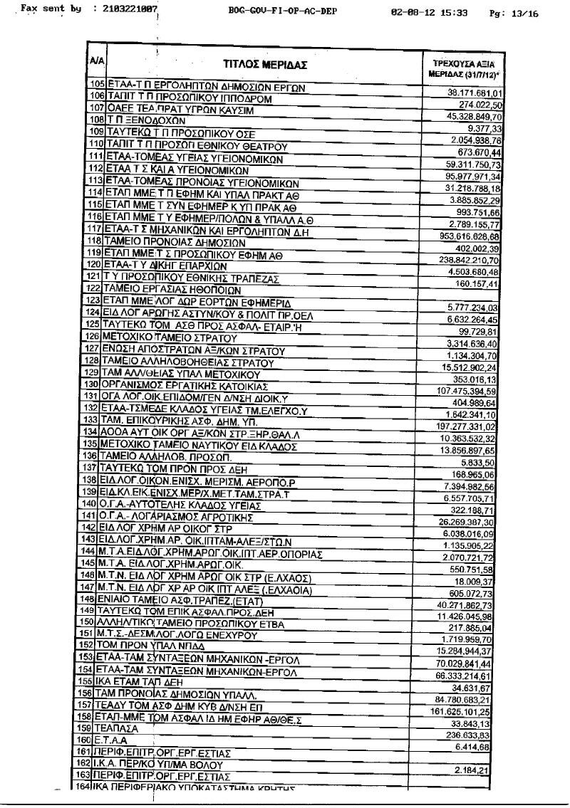 Με βάση τα στοιχεία που προσκομίστηκαν (της 31ης/6/2012), η τρέχουσα αξία (αυτή δηλαδή που θα έπιαναν οι τίτλοι αν ρευστοποιούνταν στη δευτερογενή αγορά) της μερίδας των 208 ασφαλιστικών φορέων εκτιμάται μόλις στα 4,7 δισ. ευρώ.